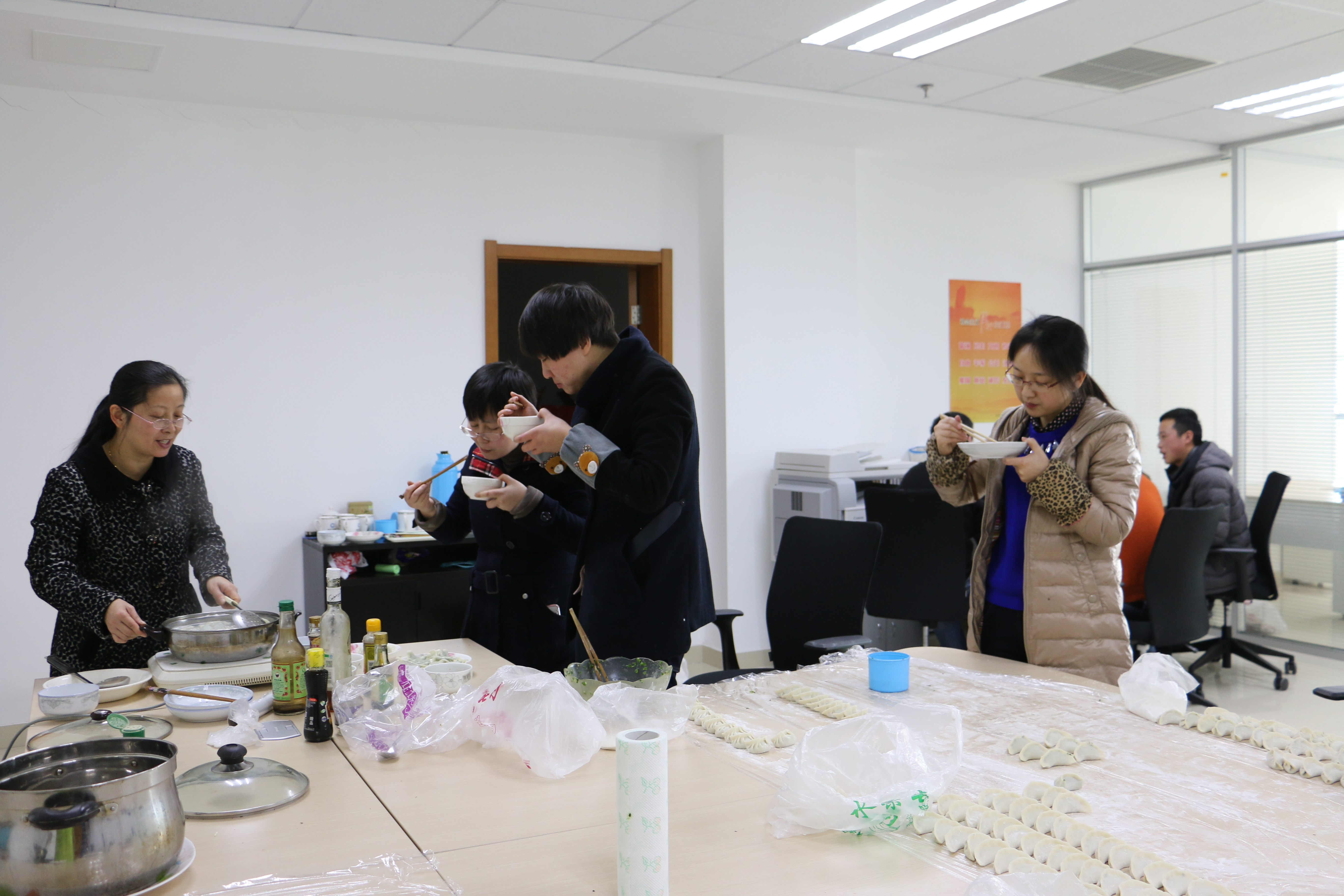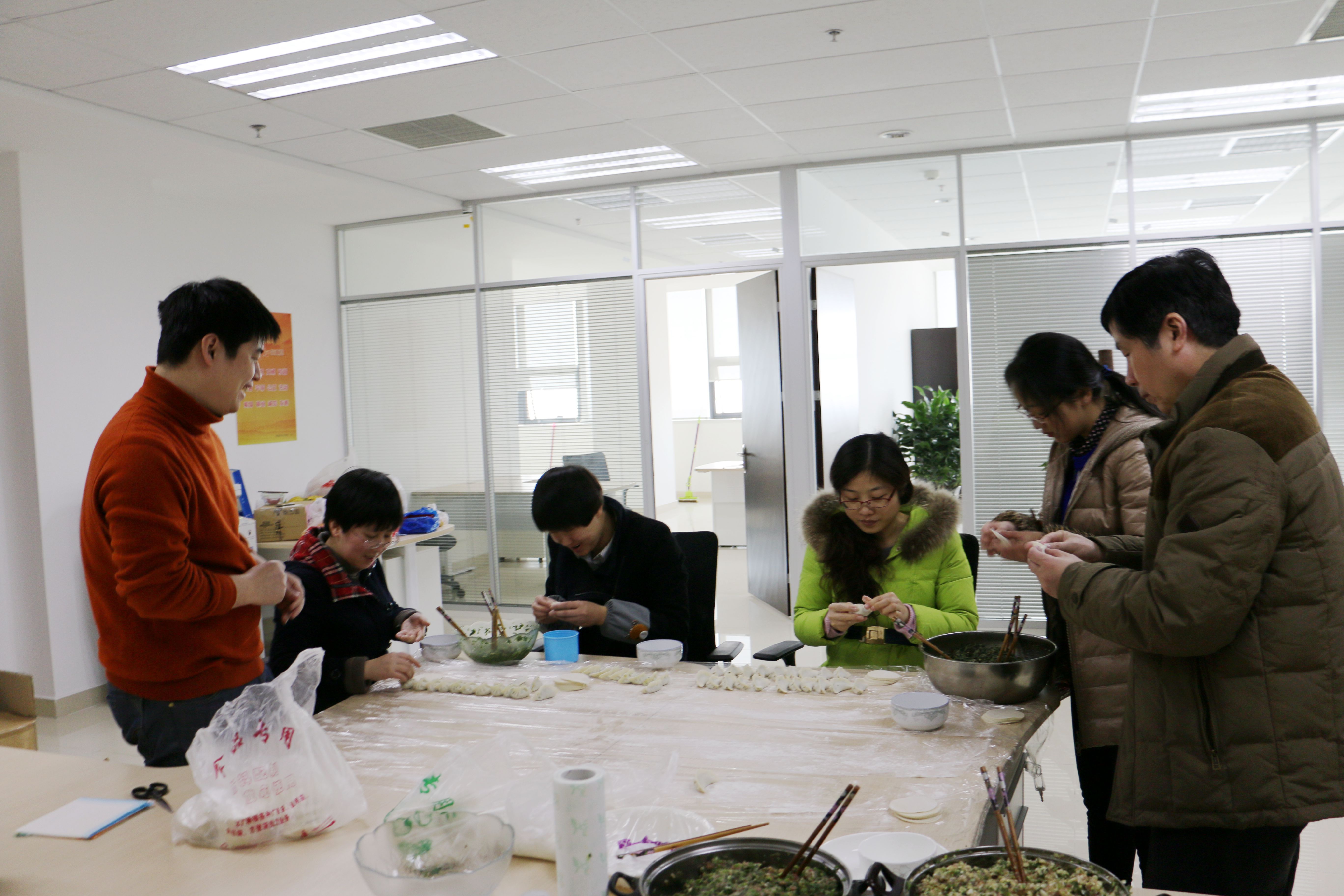 为庆祝2015的到来,继掼蛋比赛后,2月12日,合肥创新院又举办了包饺子活动,进一步丰富员工生活、增强员工融入感。创新院全体成员参与了此次活动。